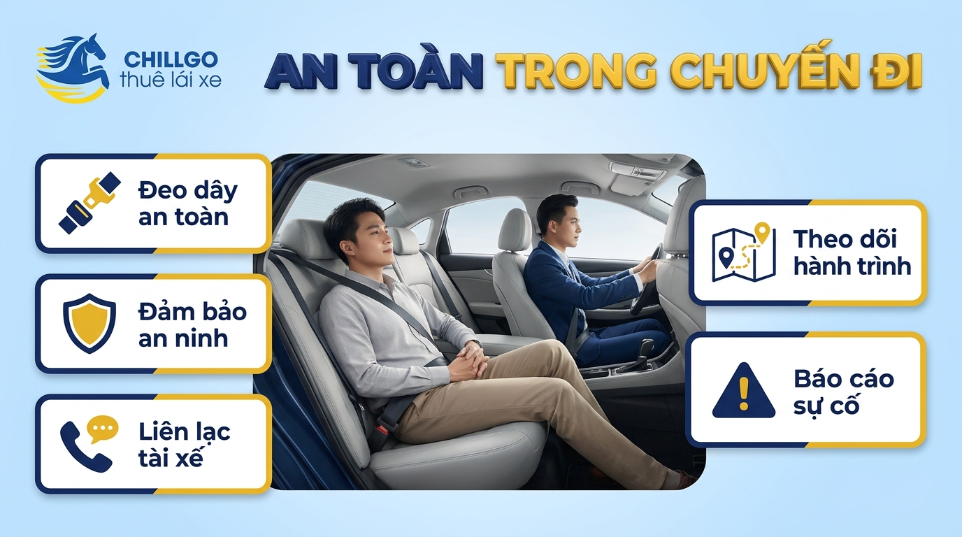 Bạn không cần lo lắng về giao thông hay an toàn vì tài xế ChillGo được đào tạo chuyên nghiệp. Nếu gặp bất kỳ vấn đề nào, hỗ trợ khách hàng 24/7 sẽ giúp bạn.